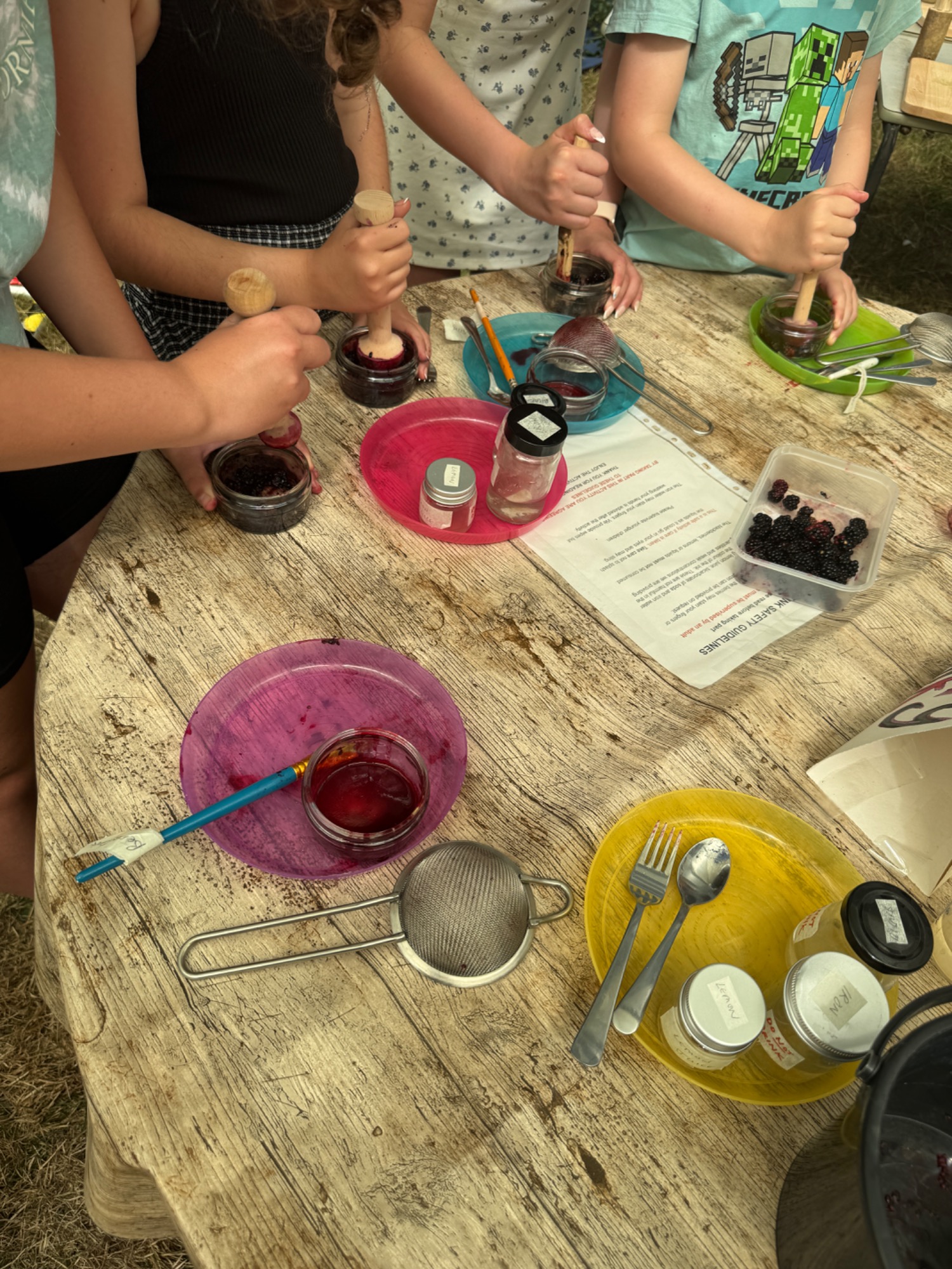 On 13th August Knaresborough Forest Park and town came together to commerorate the 255th anniversary of the Enclosures Act and bringing 60 hectares of land back into community ownership. It was a beautiful day of crafts, activities and music held as part of the wider Feva Arts Festival taking place in Knaresborough that week and celebrates our natural heritage, green spaces and renewwed connection to people and the land. I was delighted to hold a berry ink craft stall for children and adults alike, to get their hands sticky and make colourful pictures and patterns using blackberries and simple colour changing additives. Fo more information visit https://www.knaresboroughforestpark.org