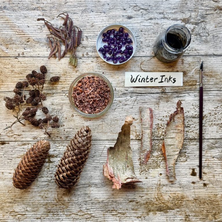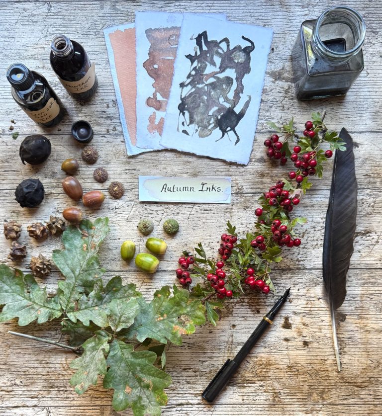 Join Lou on this seasonal workshop creating natural colour with plant-based inks. You will guided through the relaxing and mindful process of making wild inks learning. Create dark and rich autumnal colours from foraged berries, galls and husks and learn how to shift these colours using modifiers. This is followed by creative exploration and experimentation with a variety of papers and mark making tools. Wild ink making is a beautiful practice that reminds us to slow down, connect with nature and enjoy the process of discovery. All paper, brushes and mark-making materials are provided but please bring your own apron.